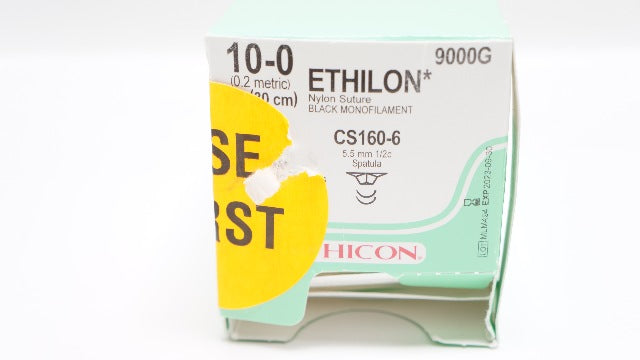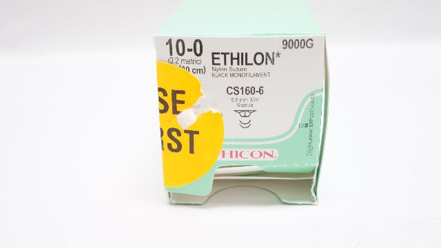 - Ethicon 9000G 10-0 Ethilon, CS160-6, 5.5mm 1/2c Spatula, 12inch (x) - Box of 12