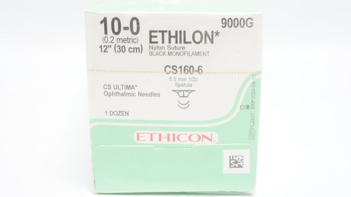 - Ethicon 9000G 10-0 Ethilon, CS160-6, 5.5mm 1/2c Spatula (x) ~ Box of 12