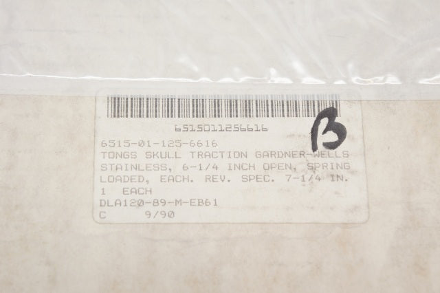 Iii part name assigned by controlling agency: tongs skull traction gardner-wells design 6.25" max opening crs
