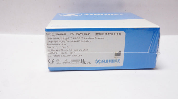 - Zimmer 00-8752-018-36 Longevity Highly Crosslinked Polyethylene Size QU/36mm (x)