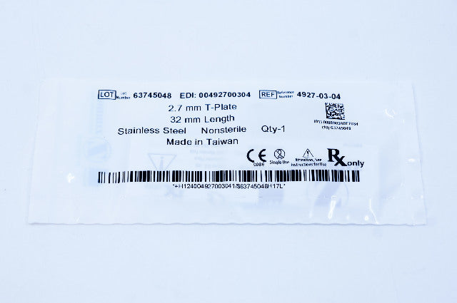 - Zimmer 4927-03-04 2.7mm T-Plate, 32mm Length, Stainless Steel, Nonsterile