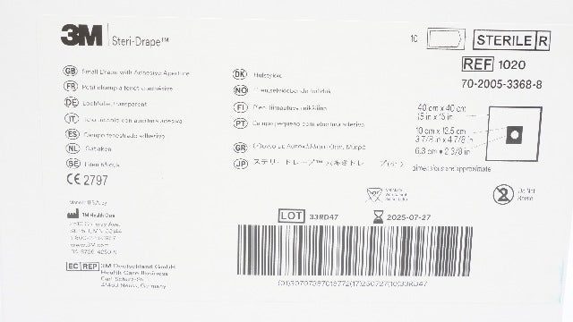 - 3M 1020 Steri-Drape Small Drape w/ Adhesive Aperture 15 x 15inch (x) - Box of 10