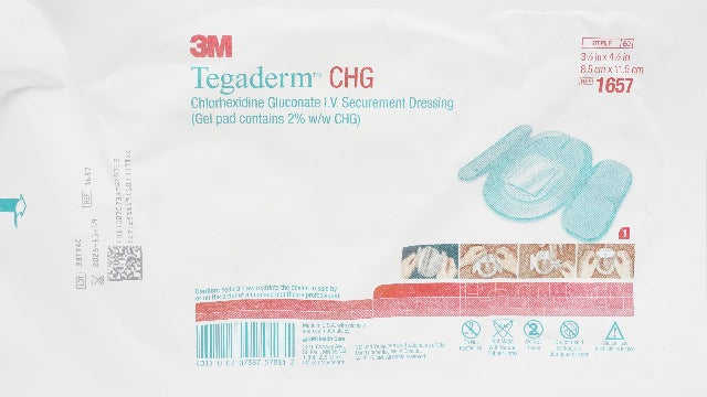 - 3M 1657 Chlorhexidine Gluconate I.V. Securement Dressing 3-1/2 x 4-1/2inch