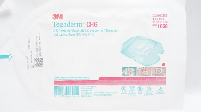 - 3M 1658 Tegaderm Chlorhexidine Gluconate IV Securement Dressing 4 x 4-3/4inch(x)