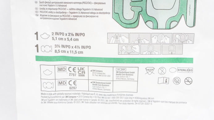 - 3M 1837-2100 PICC/CVC Securement Device +Dressing 2x2-1/8inch 3-1/2x4-1/2inch