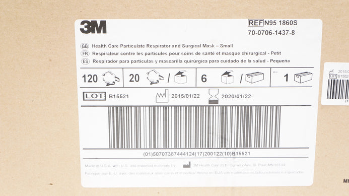 - 3M 1860S Health Care Particulate Respirator and Surgical Mask S - Pack of 120(x)