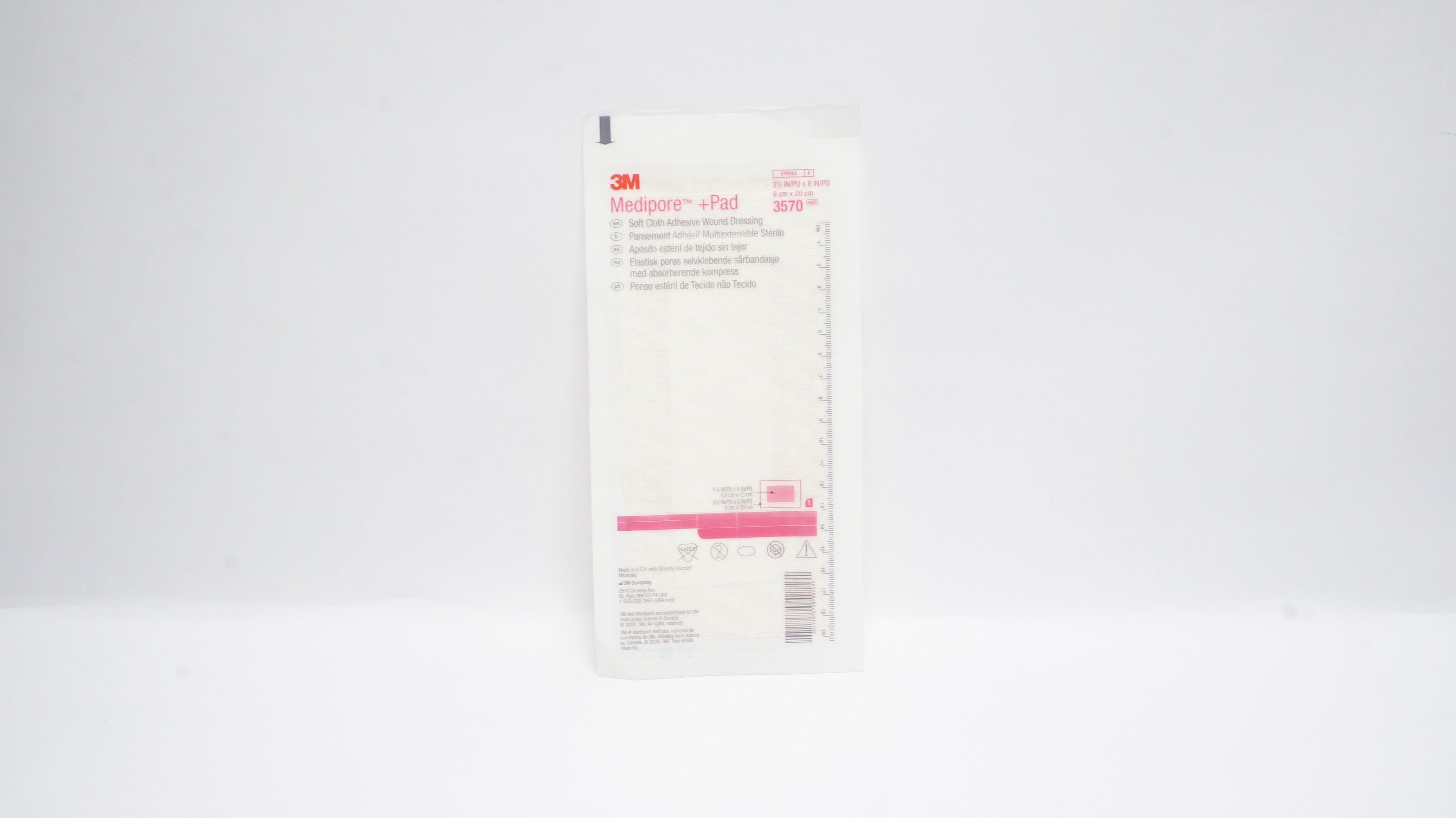 - 3M 3570 Medipore + Pad Soft Cloth Adhesive Wound Dressing 3-1/2inch x 8inch (x)