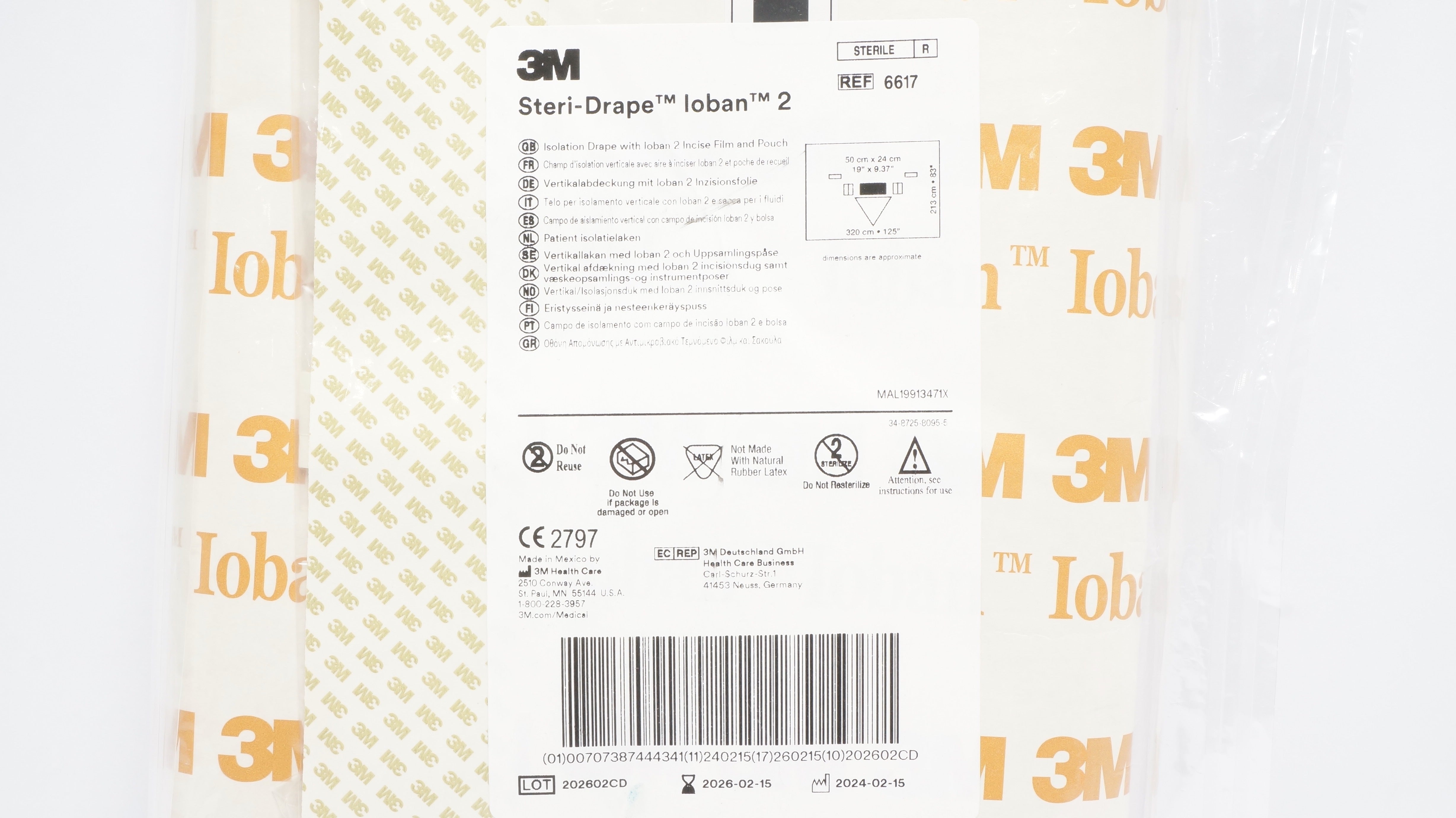 - 3M 6617 Steri-Drape Isolation Drape w/Loban 2 Incise Film&Pouch 19 x 9.37inch