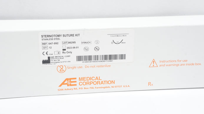 - A&E Medical 047-092 7-0 MYO/Wire II Sternotomy Stre Kit 1/2c 49mm (x) -Box of 12