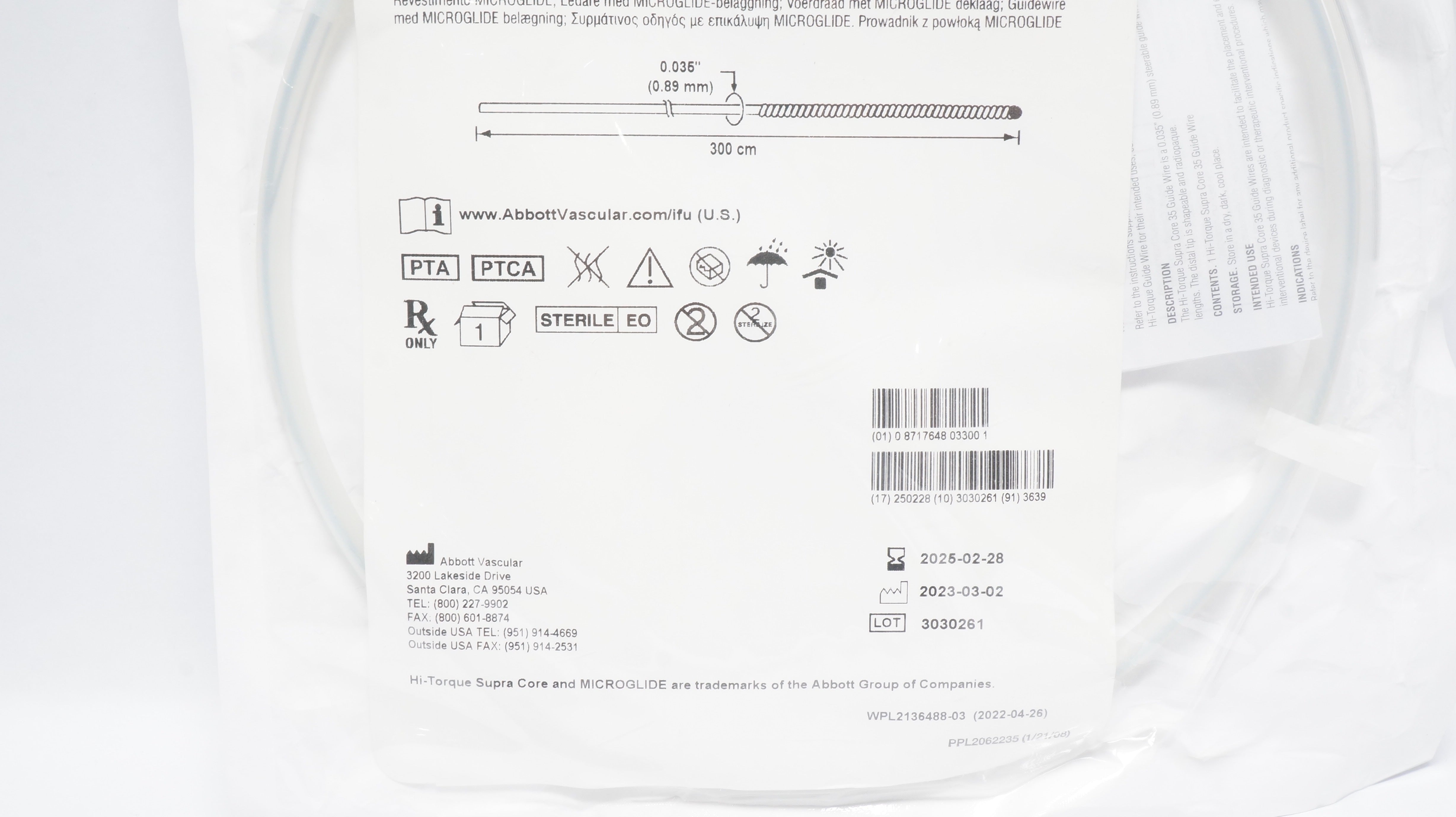 - Abbott 1002703-02 Guide Wire with Microglide Coating 0.035inch x 300cm (x)