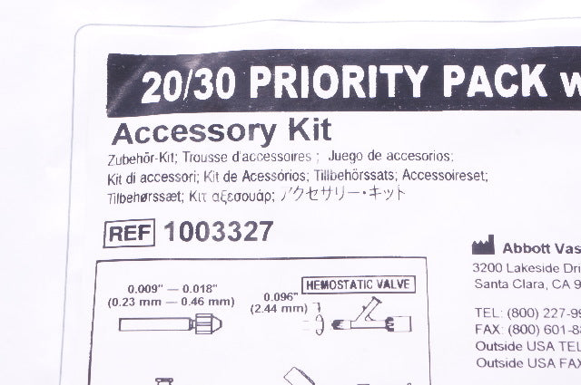 - Abbott 1003327 Accessory Kit 0.009in.0.018in. x 0.096in. 20/30 Priority Pack (x)