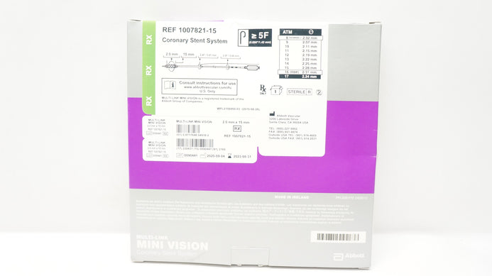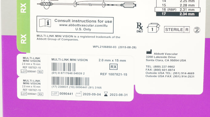 - Abbott 1007821-15 Multi-Link Mini Vision Coronary Stnt System 2.0mm x 15mm (x)