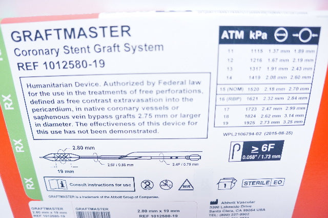 - Abbott 1012580-19 Graftmaster Coronary Stent Graft System 2.80mm x 19mm (x)
