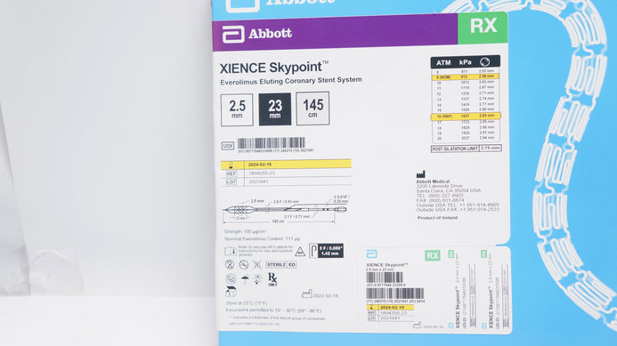 - Abbott 1804250-23 Xience Skypoint Coronary Stnt System 2.5mm x 23mm x 145cm (x)