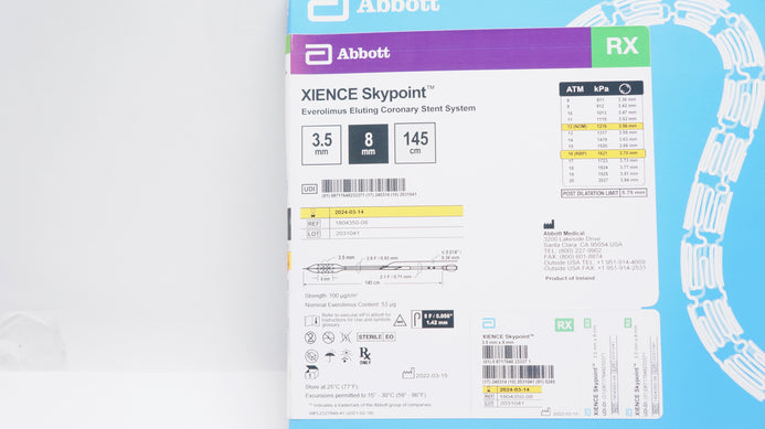 - Abbott 1804350-08 Xience Skypoint Coronary Stnt System 145cm x 3.5mm x 8mm (x)