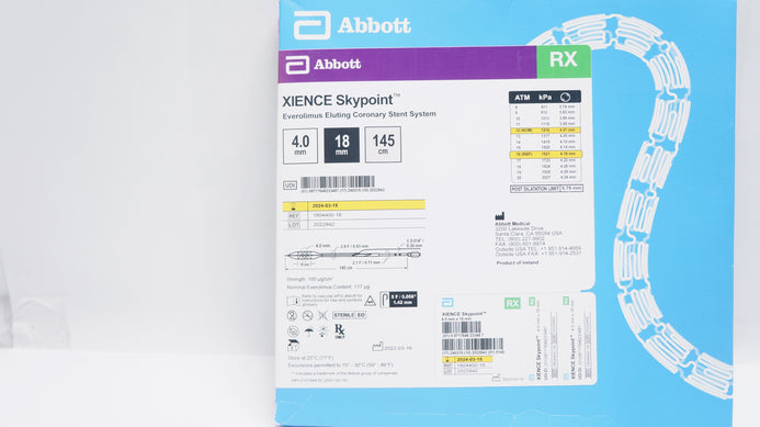 - Abbott 1804400-18 Xience Skypoint Coronary Stnt System 145cm x 4.0mm x 18mm (x)