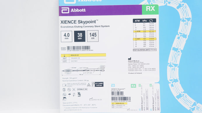 - Abbott 1804400-38 Xience Skypoint Coronary Stnt System 4.0mm x 38mm x 145cm (x)
