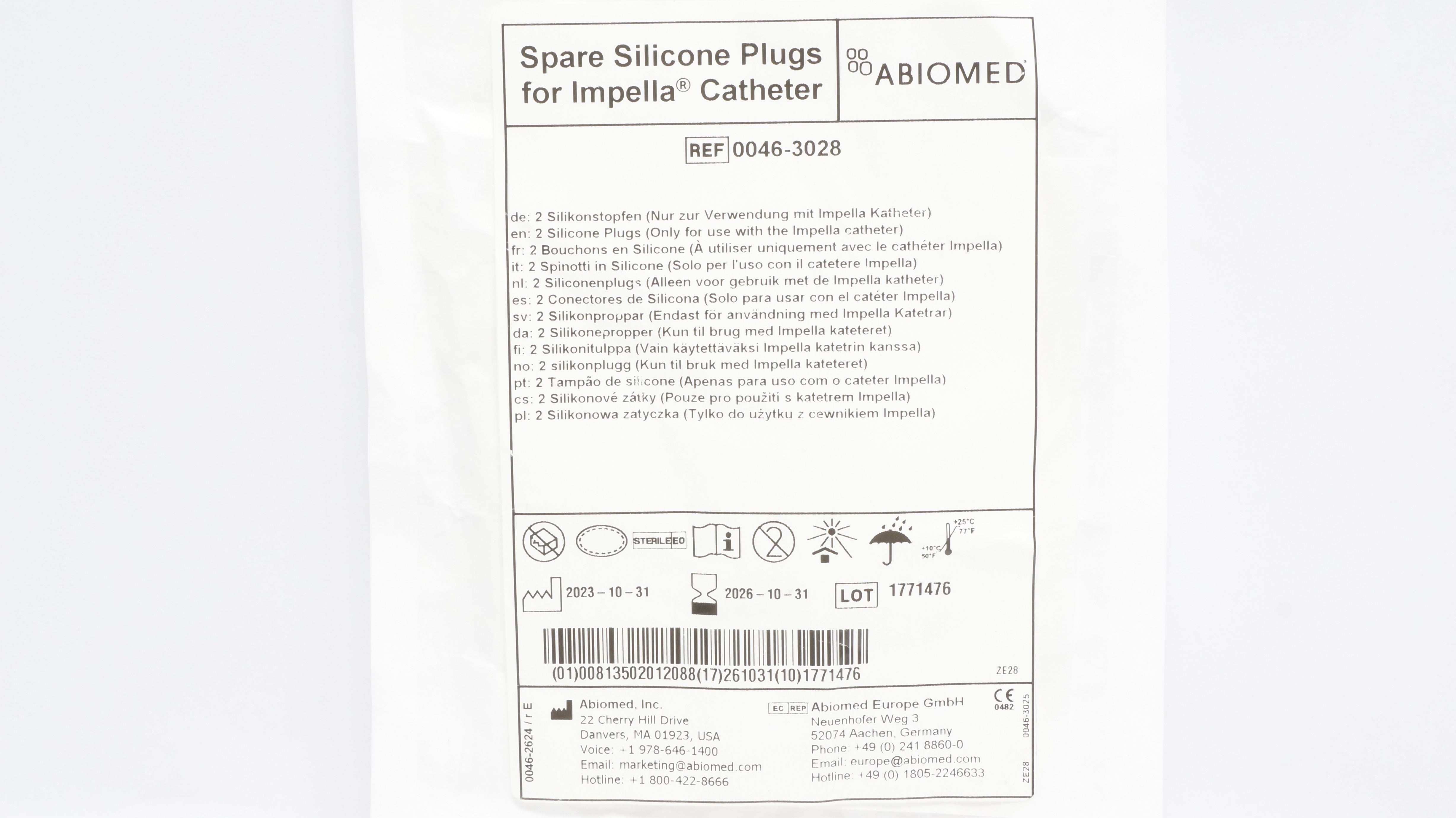 - Abiomed 0046-3028 Spare Silicone Plugs for Impella Cath.