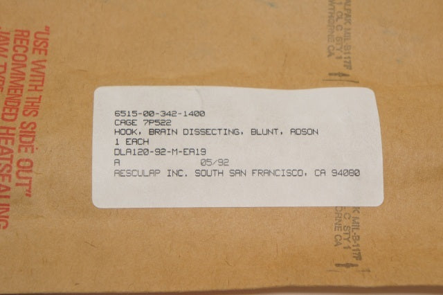 - Aesculap Hook Brain Dissecting Adson 90 degree Bend 8in.