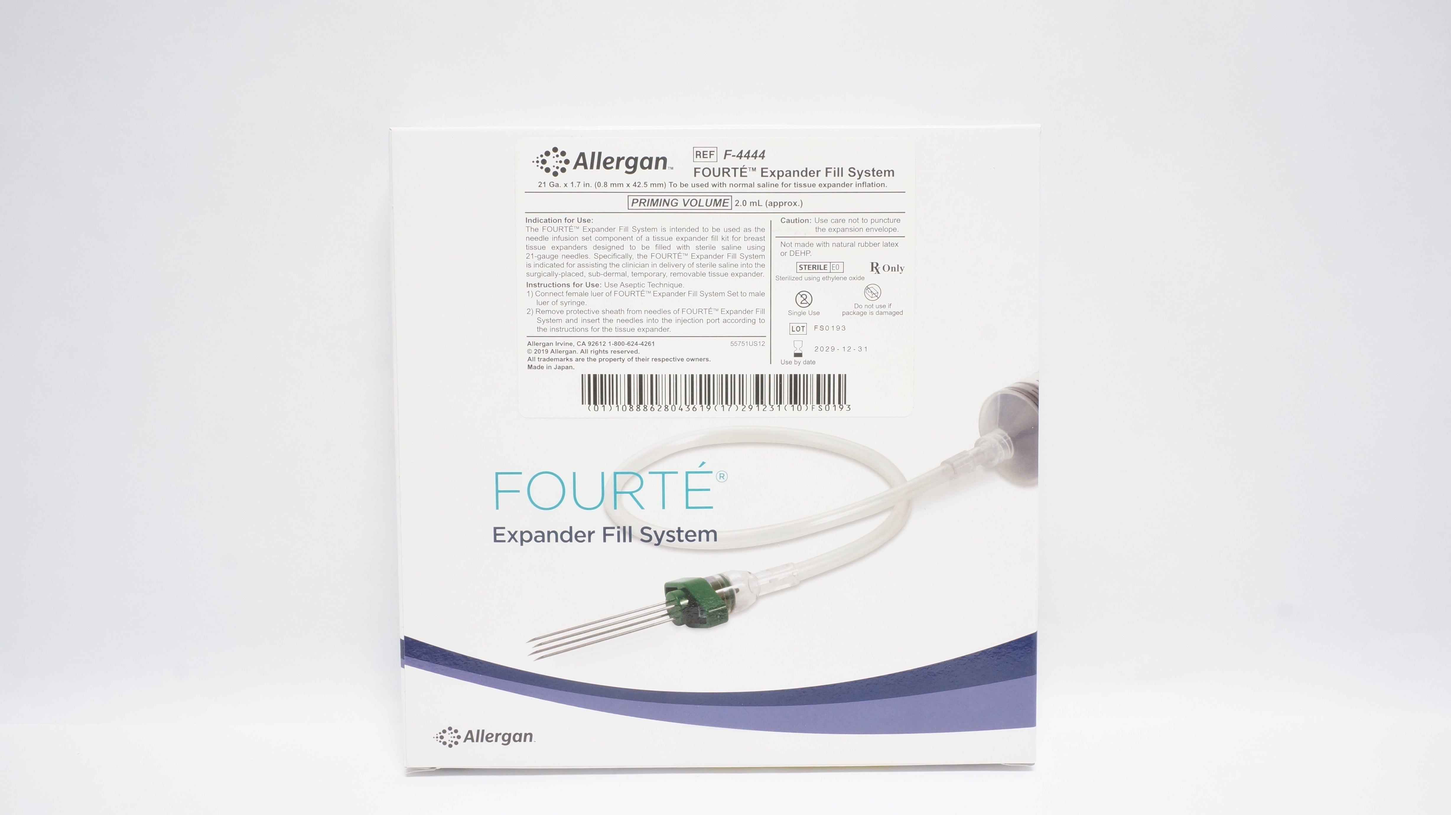 - Allergan F-4444 Fourte Expander Fill System 21 Ga x 1.7 inch Priming Vol. 2.0mL