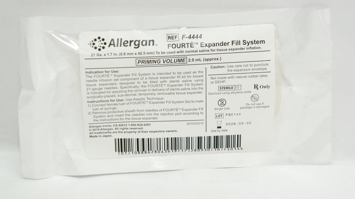 - Allergan F-4444 Fourte Expander Fill System 21 Ga x 1.7inch Priming Vol. 2.0mL