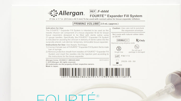 - Allergan F-4444 Fourte Expander Fill System 21Ga x 1.7inch Priming Vol. 2.0mL
