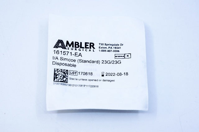 - Ambler Surgical 161571 I/A Simcoe 23G/23G Disposable ~ Box of 10