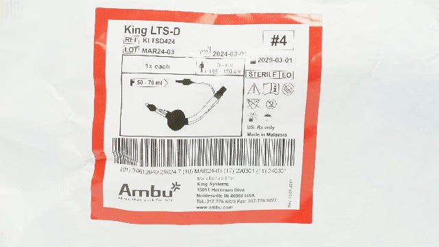 - AMBU KLTSD424 King LTS-D Disposable Laryngeal Tube 5-6ft, 50-70ml, #4