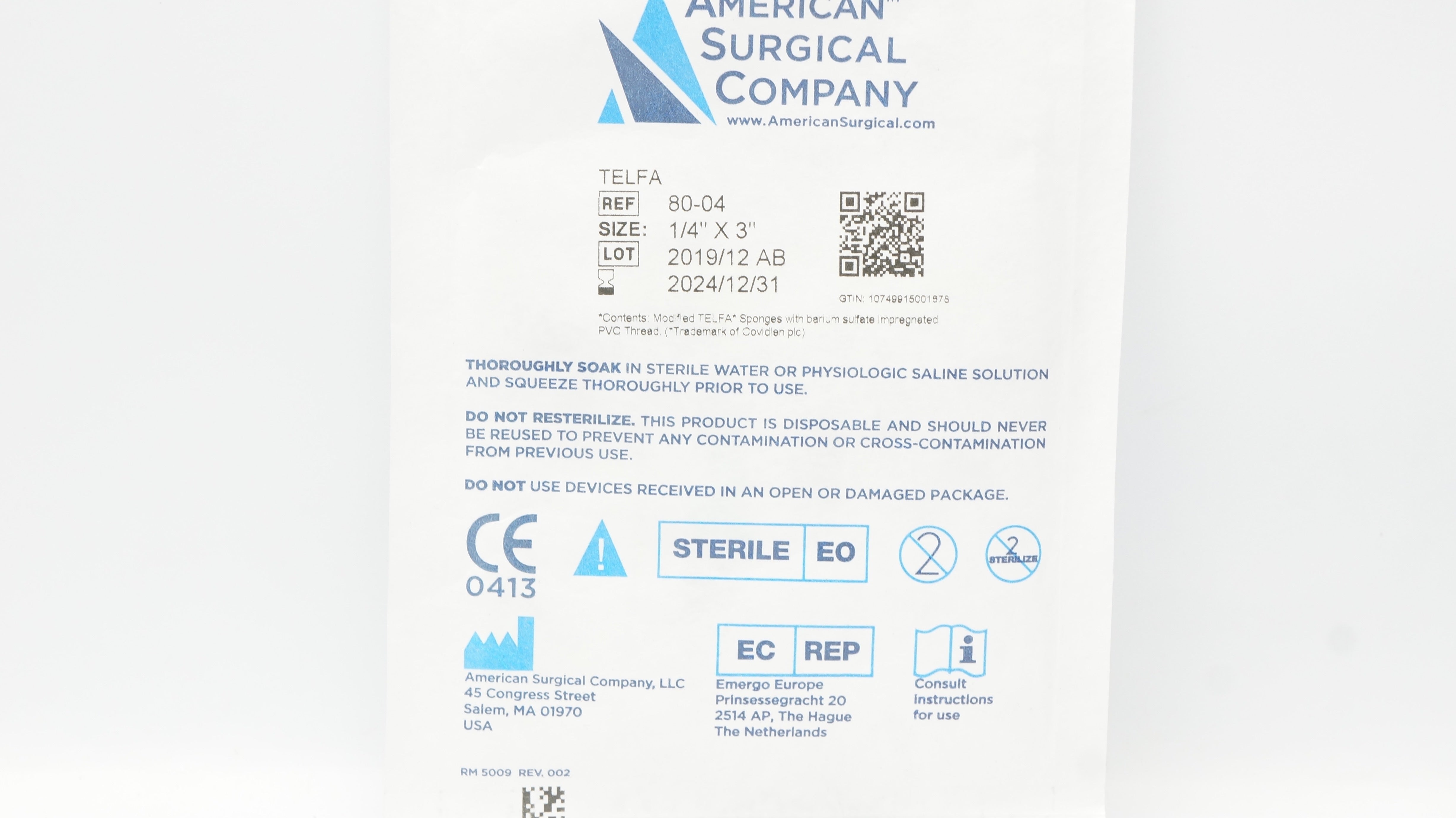 - American Surgical 80-04 Telfa 1/4inch x 3inch (x)