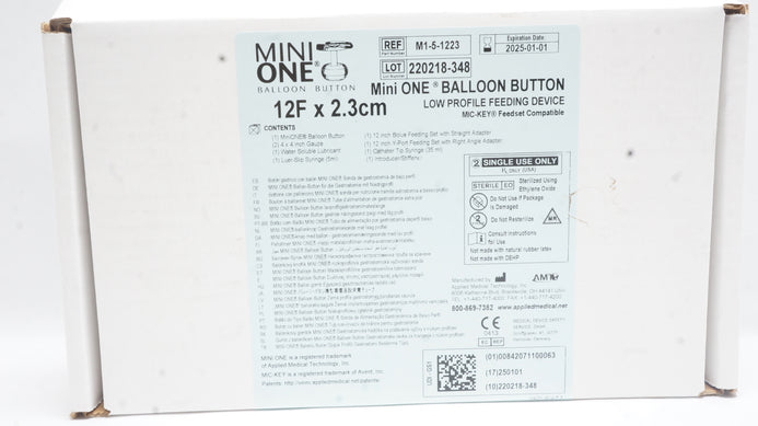 - AMT 1-5-1223 Mini One Balloon Button Gastrostomy Feeding Tube 12F x 2.3cm