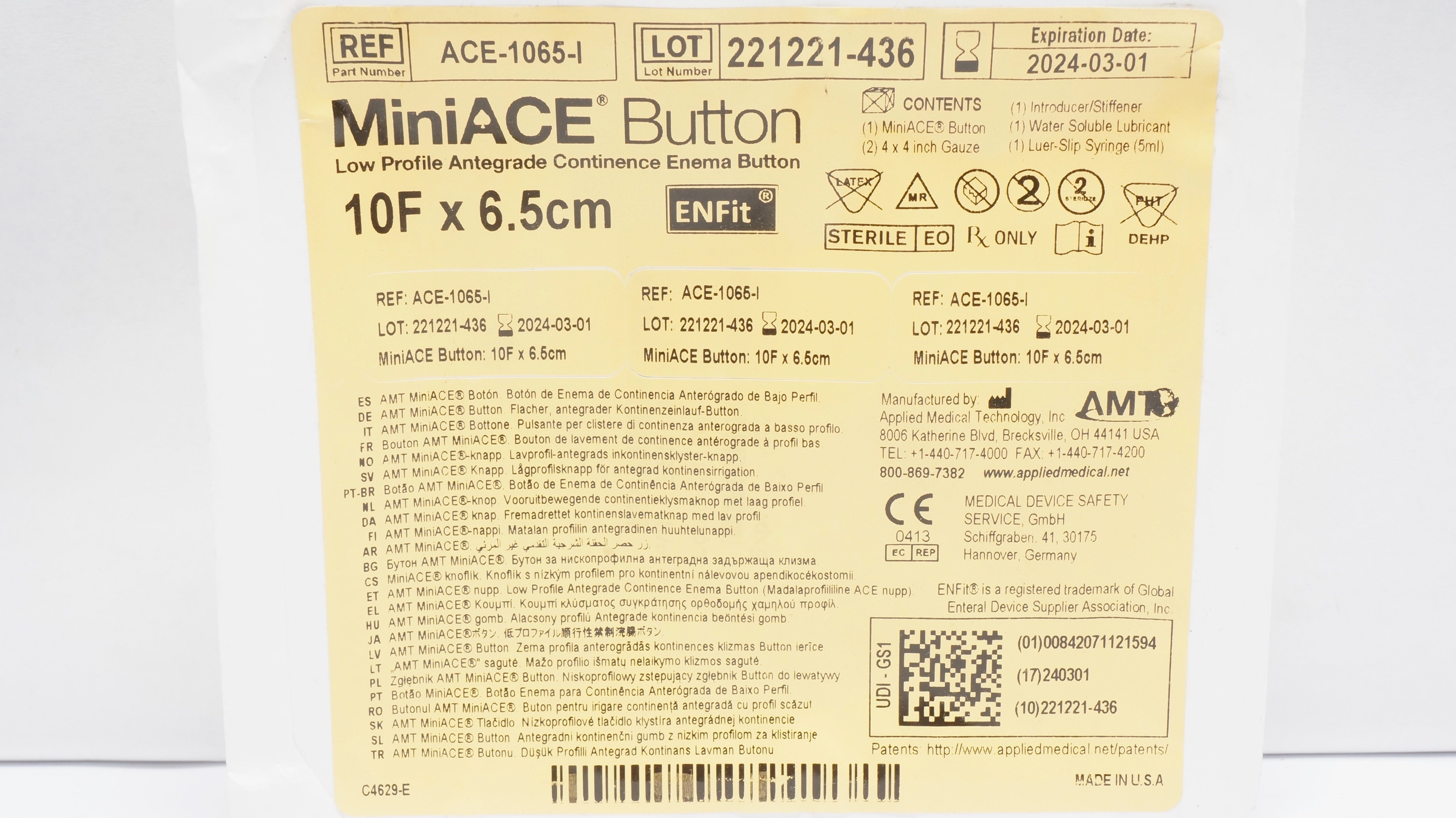 - AMT ACE-1065-I MiniACE Button Low Profile Enema Button 10F x 6.5cm (x)