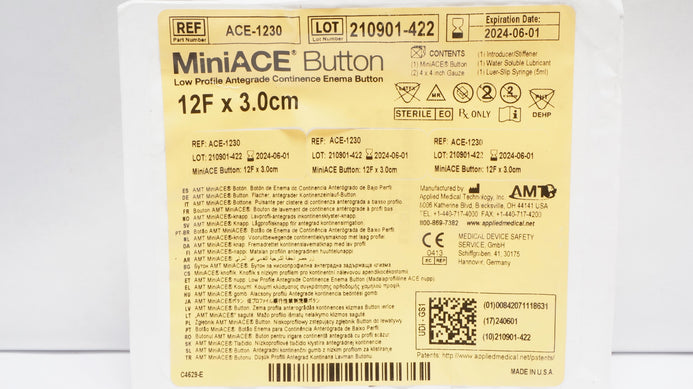 - AMT ACE-1230 MiniACE Button Low Profile Integrate Continence Enema Button (x)