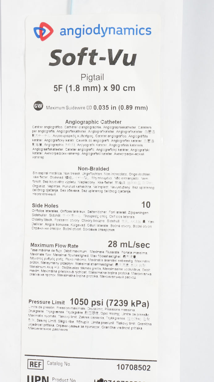 - AngioDynamics 10708502 Soft-Vu Pigtail Angiographic Cath. 5F x 90cm (x)