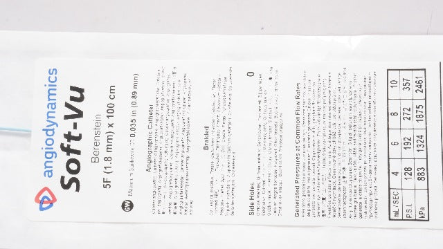 - AngioDynamics 10722701 Angiographic Cath. Soft-Vu Berestein 5F x 100cm