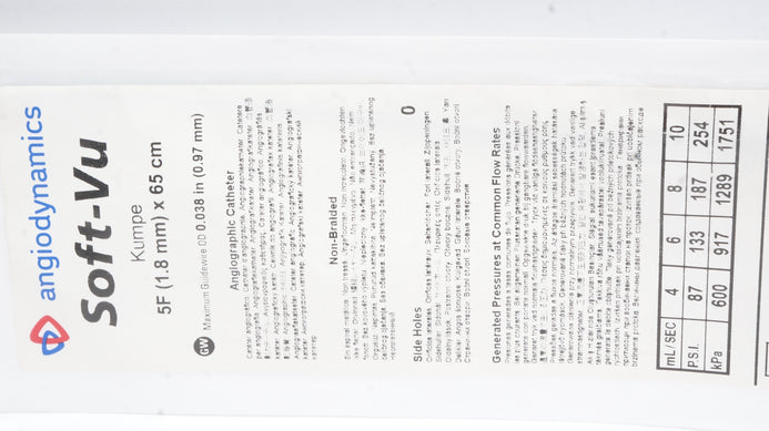 - AngioDynamics 10732701 Soft-Vu Kumpe Angiographic Cath. 5F x 65cm (x)