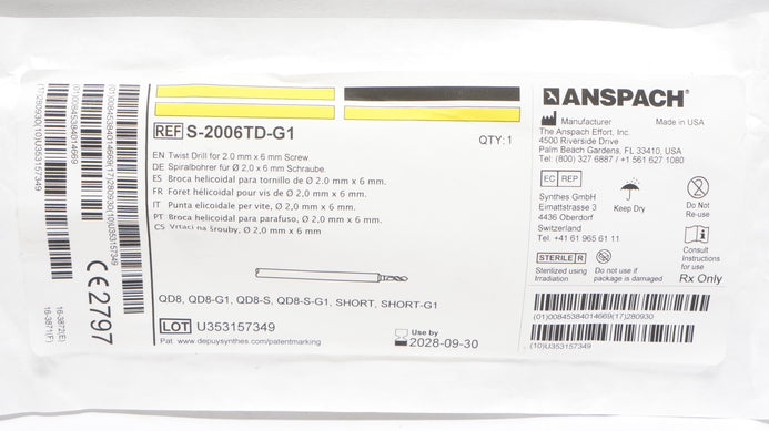 - Anspach S-2006TD-G1 Twist Drill for 2.0mm x 6mm Screw