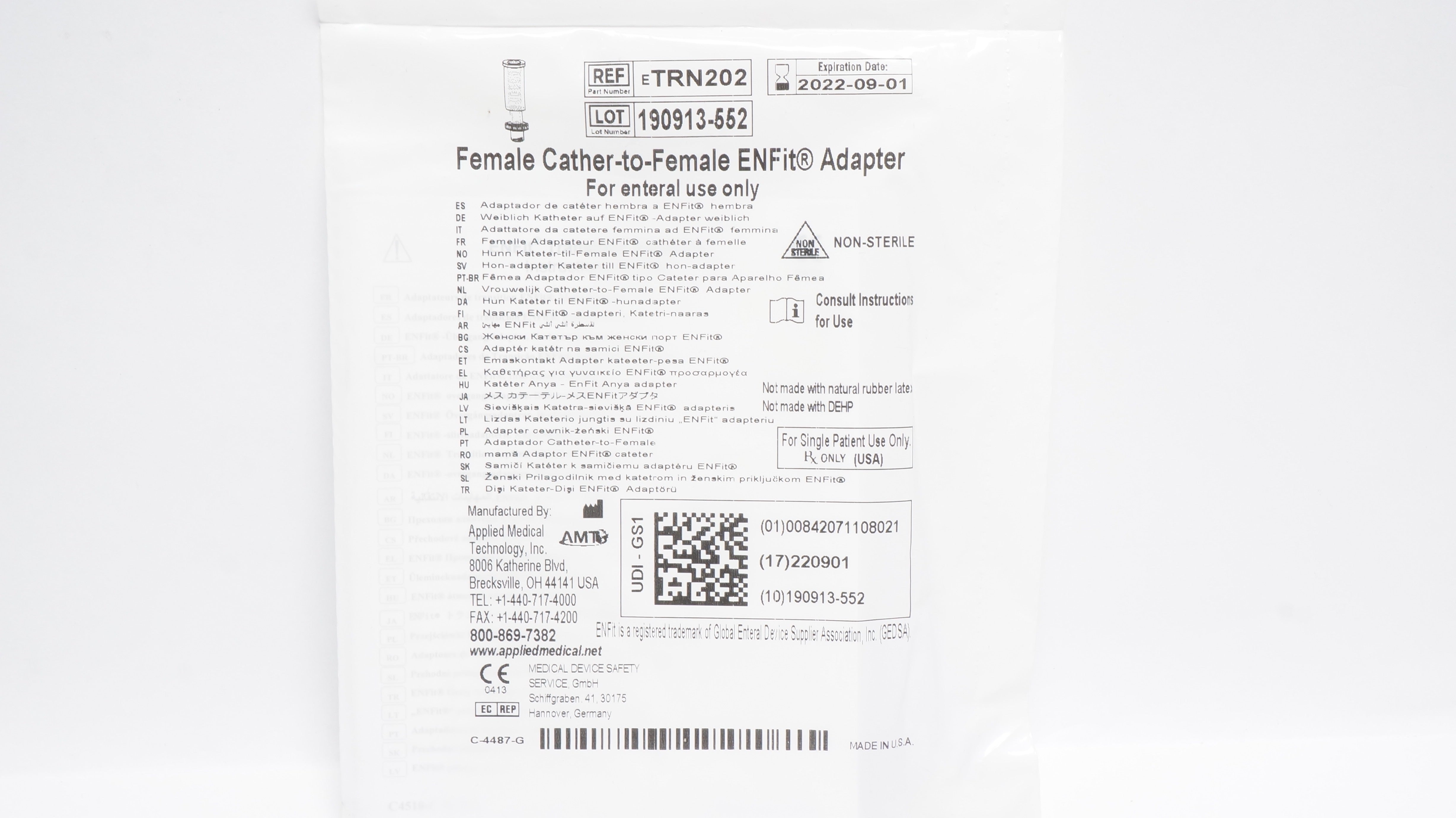 - Applied Medical eTRN202 AMTFemale Cath.-to-Female ENFit Adapter (x)