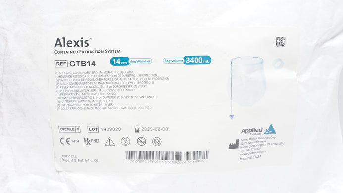 - Applied Medical GTB14 Alexis Contained Extraction System 14cm x 3400mL