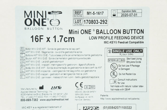 - Applied Medical M1-5-1617 Mini One Balloon Button Feeding Device 16F x 1.7cm (x)