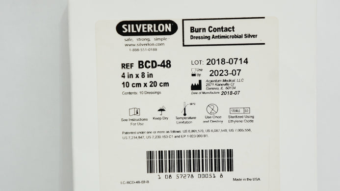 - Argentum BCD-48 Silverlon Burn Contact Dressing Antimicrobial 4x8in(x)- Box of 3