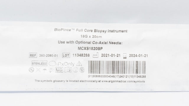 - Argon 360-2080-01 BioPince Full Core Biopsy Instrument 18Ga x 20cm (x)