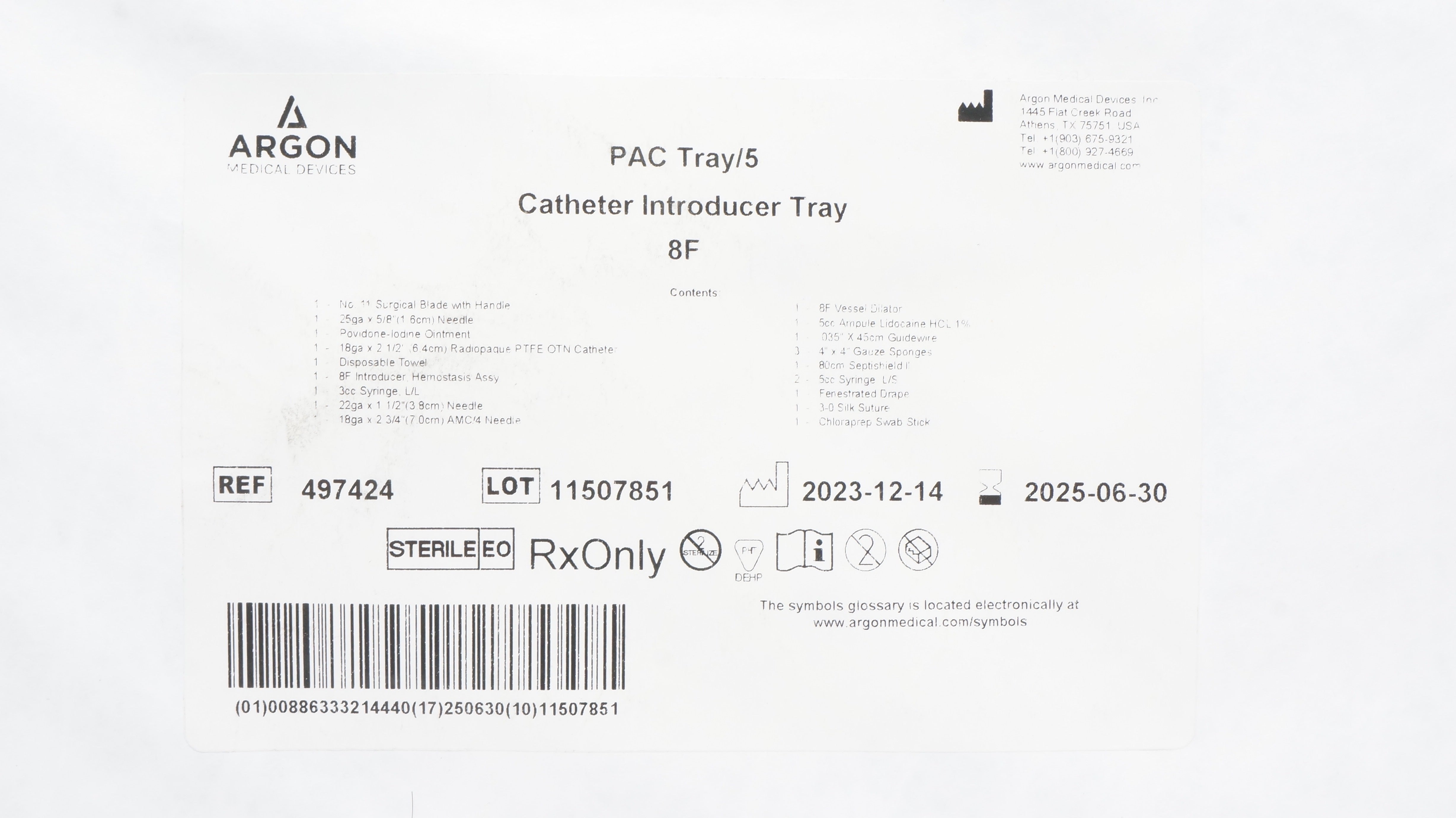 - Argon 497424 PAC Tray/5 Cath. Introducer Tray 8F (x)