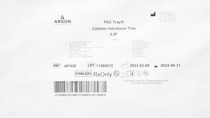 - Argon 497425 PAC Tray/5 Cath. Introducer Tray 8.5F (x)