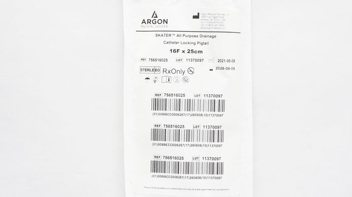 - Argon 756516025 SKATER All Purpose Drainage Cath. Locking Pigtail 16F x 25cm
