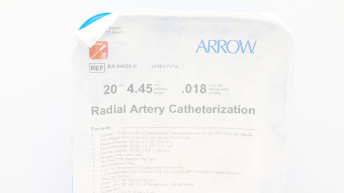 - Arrow AK-04020-C Radial Artery Catheterization Kit 20Ga x 4.45cm x .018inch (x)