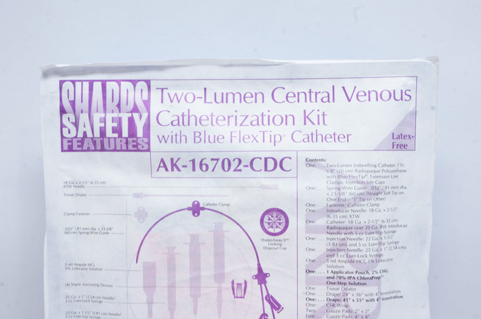 - Arrow AK-16702-CDC Two-Lumen Central Venous Cath. Kit 7Fr. x 20cm (x) - Box of 4
