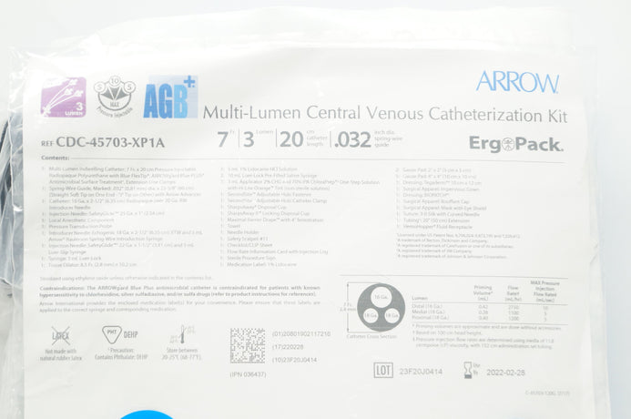 - Arrow CDC-45703-XP1A Multi-Lumen Central Venous Catheterization Kit 7Fr.