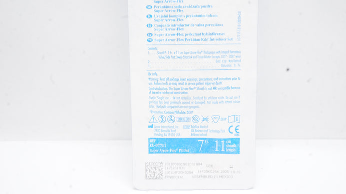 - Arrow CL-07711 Super Arrow-Flex Percutaneous Sheath Introducer Set 7Fr x 11cm