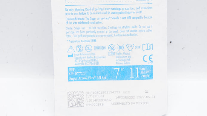 - Arrow CP-07711 Super Arrow-Flex PSI Set w/Integral Hemostasis Valve/Side Port 7F