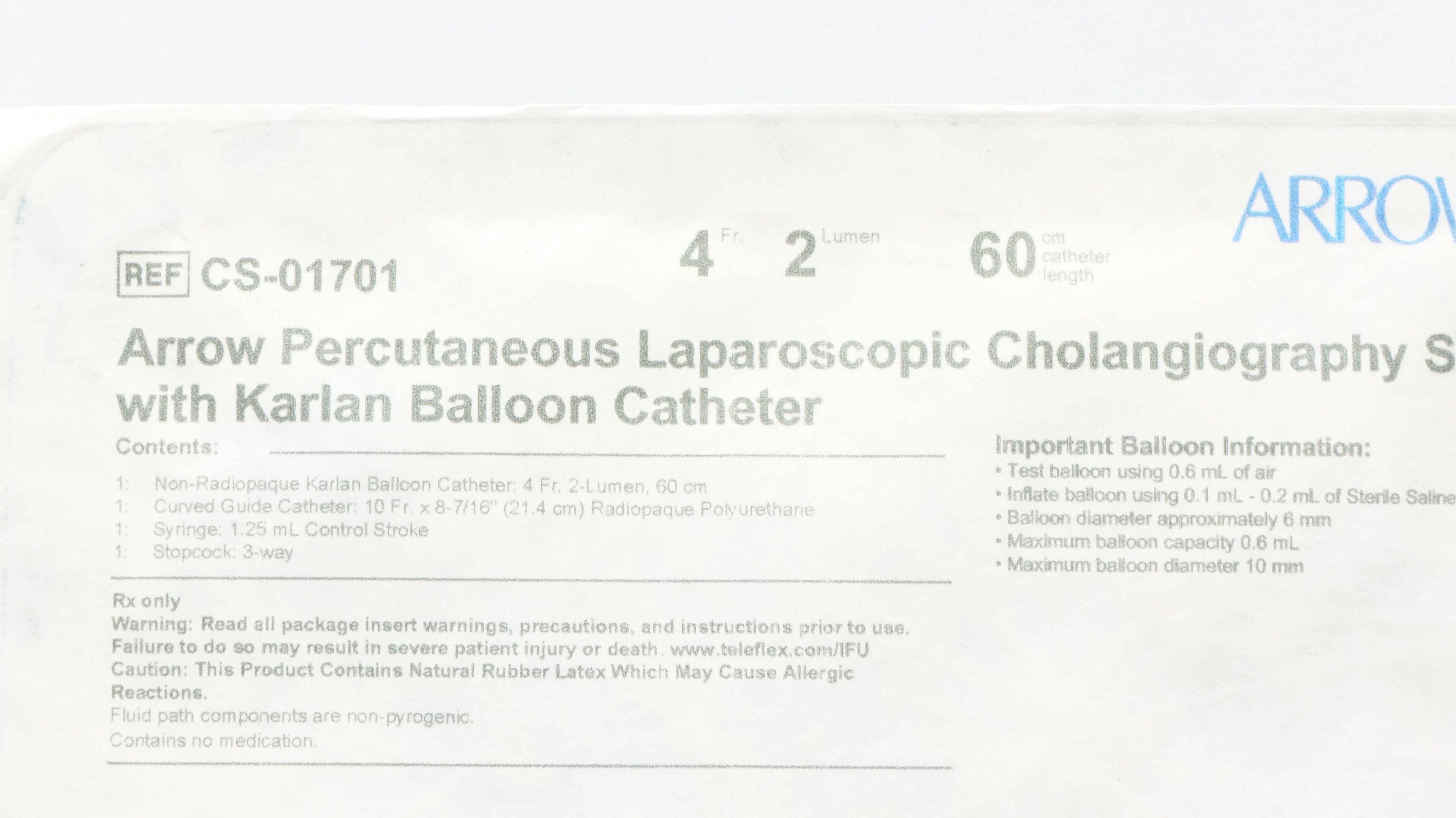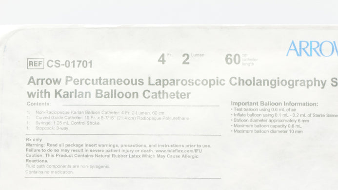 - Arrow CS-01701 Laparoscopic Cholangiography Set w/Balloon Cath. 4Fr x 60cm (x)